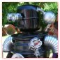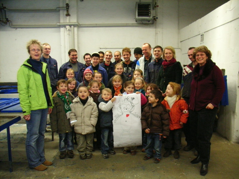In Auseinandersetzung mit den Figuren aus der Ausstellung TOYGIANTS in der Städtischen Galerie Wolfsburg haben die Kinder der AWO Kindertagesstätte Am Gutshof in Wolfsburg den Wunsch entwickelt, sich einen Beschützer für ihre Kita zu bauen. Daraus entstand das Projekt ROBBI. Die Kinder zeichneten einige Skizzen ihres Beschützers "ROBBI", der mutig, schlau und stark sein sollte. Nach Vorlagen der Skizzen wurden einige erste Modelle aus verschiedenen Materialien gebaut. Aber der große Beschützer für den Garten der Kita musste aus Metall gefertigt werden. Schnell merkten die Kinder, dass zur Metallverarbeitung u.a. auch "Schweißen" und "Löten" gehören. Was war zu tun? Es entstand die Idee, die Metallwerkstatt des Jobwerks Wolfsburg um Hilfe zu bitten. Mit ihrer Skizze besuchten die Kinder die Metallwerkstatt und diese nahm den "Auftrag" der Kinder gerne an. Jobwerk beauftragte wiederum mich, unter Berücksichtigung der Vorgaben der Kinder einen Roboter zu konstruieren. Ich fertigte nach der Kinderskizze einen (auch handwerklich umsetzbaren) Entwurf an, der den Kindern vorgestellt wurde. Obwohl sich "ROBBI" dadurch veränderte, akzeptierten die Kinder meine künstlerische Umsetzung und stimmten dem Bau zu. Für die Fertigung des Roboters wurden einige Metallteile benötigt. Dabei unterstützen VW Coaching und VW Service Factory das Projekt großzügig. Nun konnte in der Metallwerkstatt geschweißt, geschmiedet, gelötet und geschraubt werden. Mit Unterstützung der Gleichstellungsbeauftragten der Stadt Wolfsburg kamen zum Girls Day einige interessierte Mädchen aus den Schulen hinzu. Zur Projektpräsentation "Wir Kinder entdecken Kunst" im Mai 2008 in der Bürgerwerkstatt von Schloss Wolfsburg wurde ROBBI zum ersten Mal der Öffentlichkeit vorgestellt. Alle Kinder und Besucher waren begeistert!